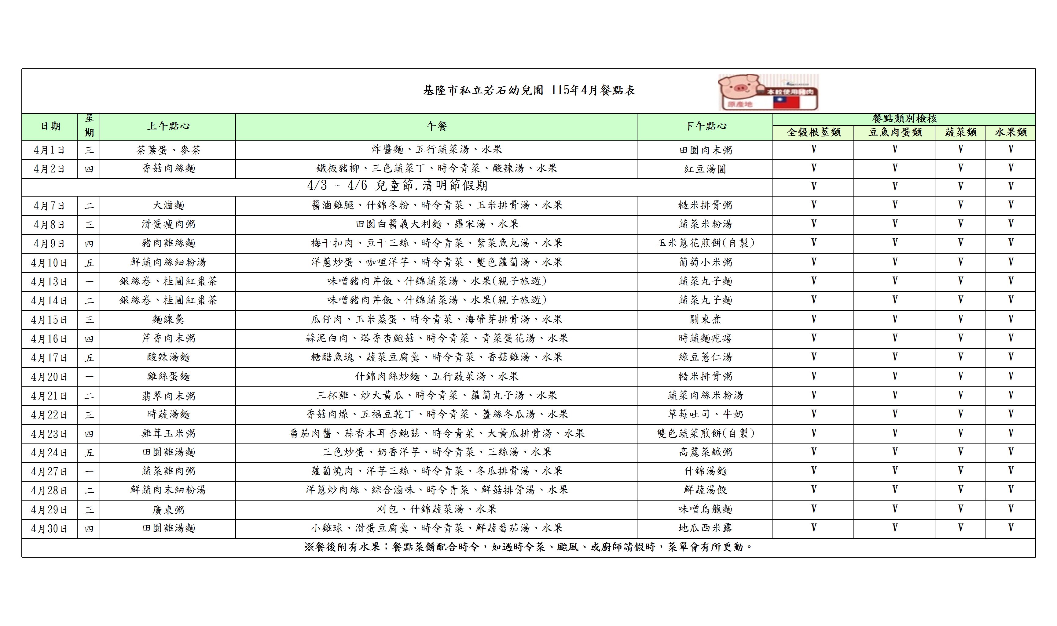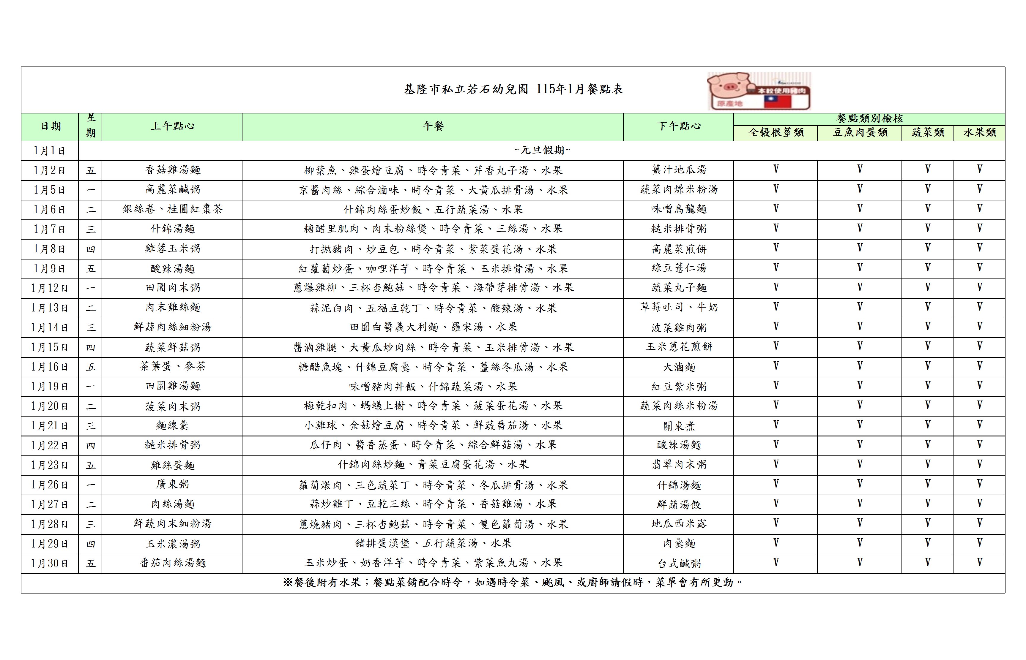 本月餐點表下載
