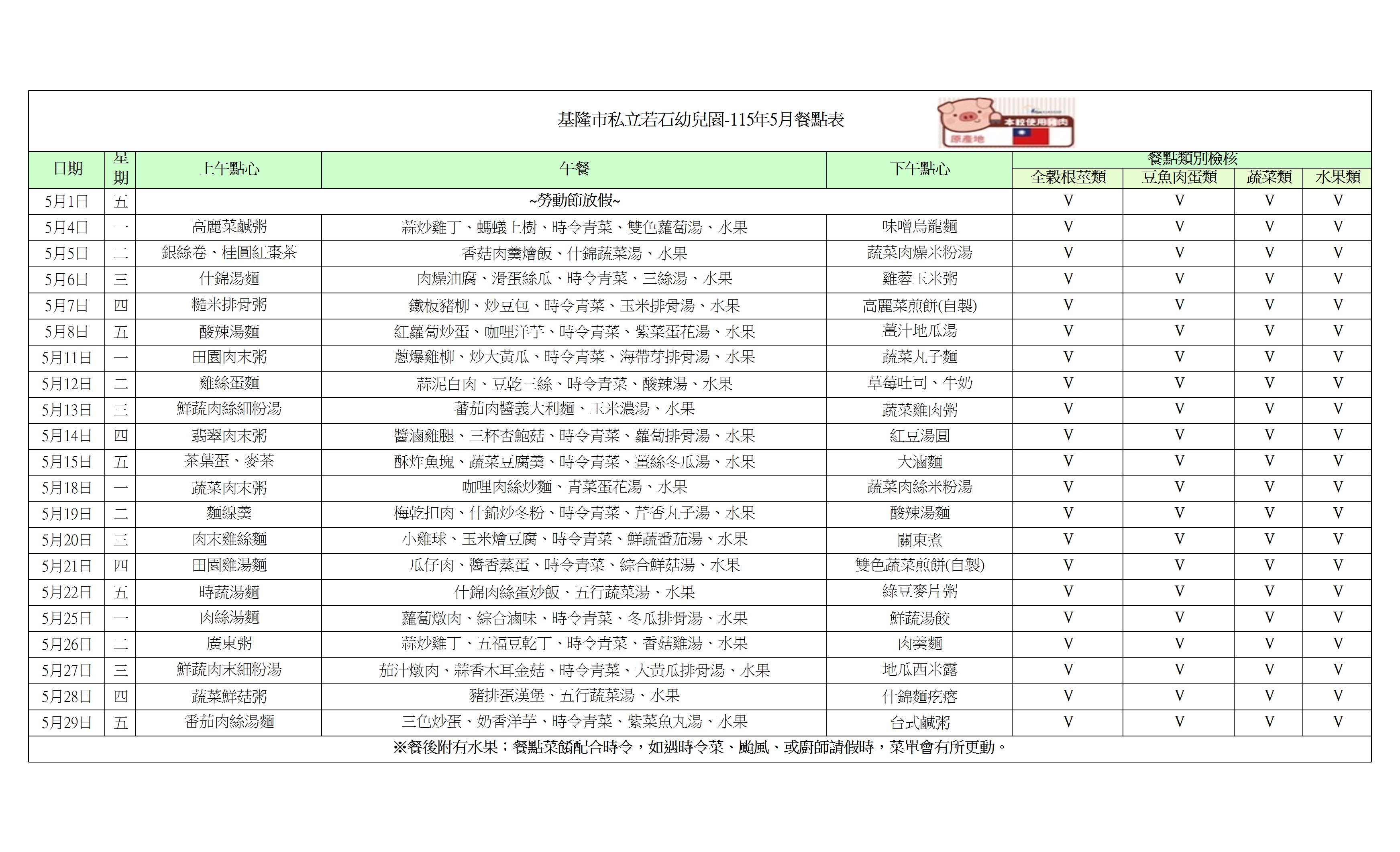 115年5月餐點表